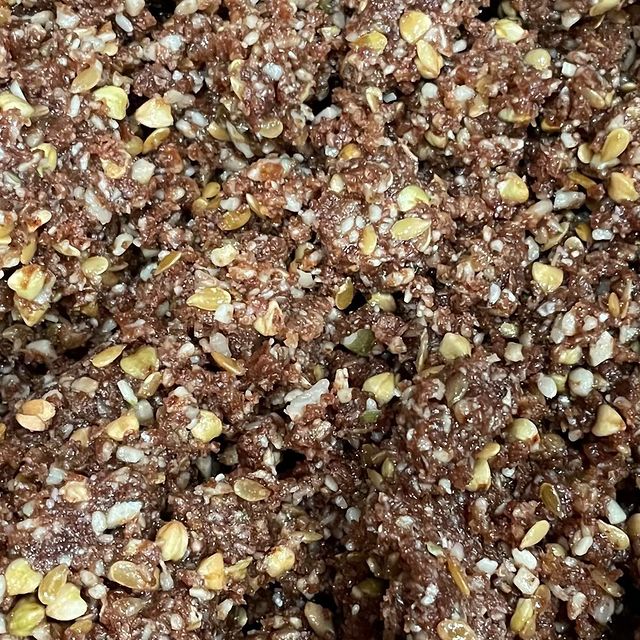 Ingredients: brazil nuts, sesame seeds, Sea salt, sunflower seeds, honey, Dates, flaxseeds, pumpkin seeds, grassfed whey protein, dairy free chocolate chips, coconut, cacao butter